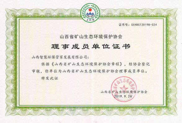 山西省礦山生態(tài)環(huán)境保護協會理事成員單位證書